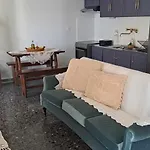 Cozinha equipada juntamente com chaleira elétrica, refrigerador e forno estão disponíveis nesta casa de férias de Monastiraki.